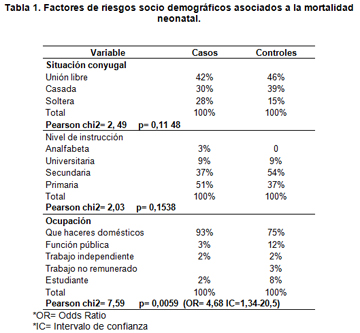 Factores de riesgos sociodemográficos y la asociación con mortalidad neonatal