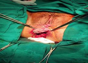 Imagen 1: Paciente gestante de 38, 6 semanas con condiloma gigante ocasionado por VPH en zona anal, vaginal y perianal.