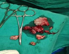 Se resuelve ingresar a quirófano para realizar extracción de los condilomas y cesárea. Se extrae 10 condilomas de diversos tamaños del introito, regional perianal y anal.